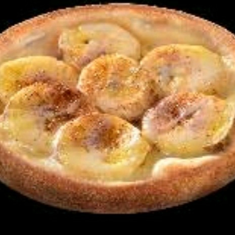Uma torta que combina as palavras Banana e Toffee (caramelo), com camadas de biscoito triturado com manteiga, um cremoso doce de leite (toffee), fatias de banana fresca e uma cobertura generosa de chantilly, finalizada com raspas de chocolate