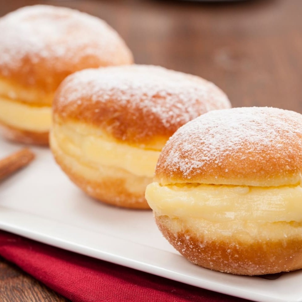 Sonho Recheado Clássico, fofinho e simplesmente irresistível! Massa leve e macia, frita na medida certa e recheada com muito creme confeiteiro ou doce de leite — você escolhe! Finalizado com açúcar por cima, é impossível comer só um! Ideal para adoçar seu Dia ou presentear alguém com sabor e carinho!