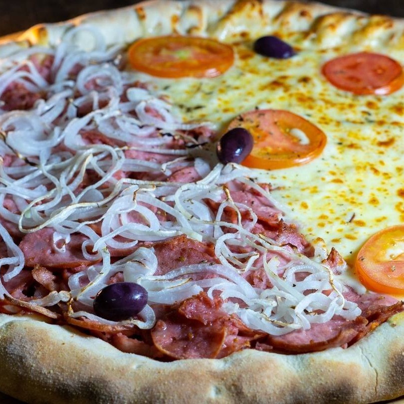 Calabresa Acebolada – linguiça calabresa fatiada e dourada com cebola, servida com arroz soltinho e feijão caseiro. (Acompanha batata frita e salada).
