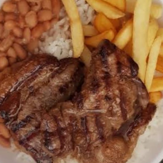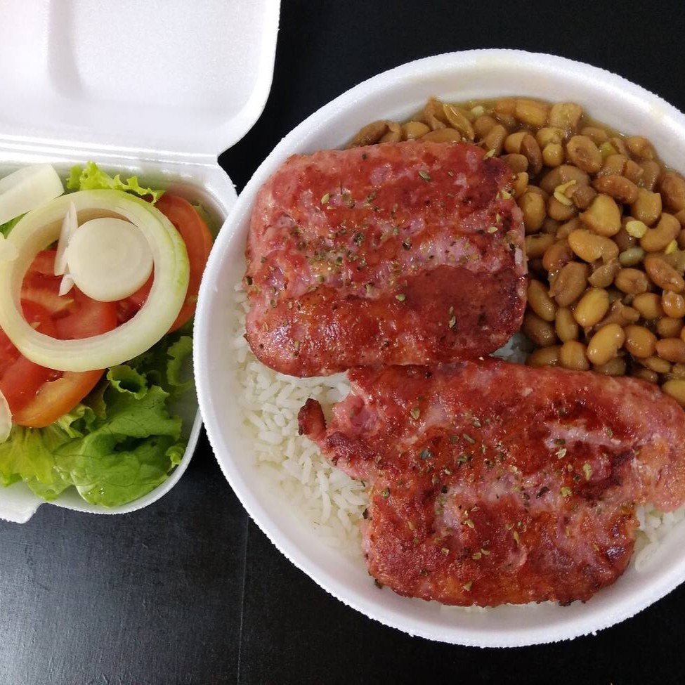 Linguiça Toscana,arroz, feijão, fritas e salada