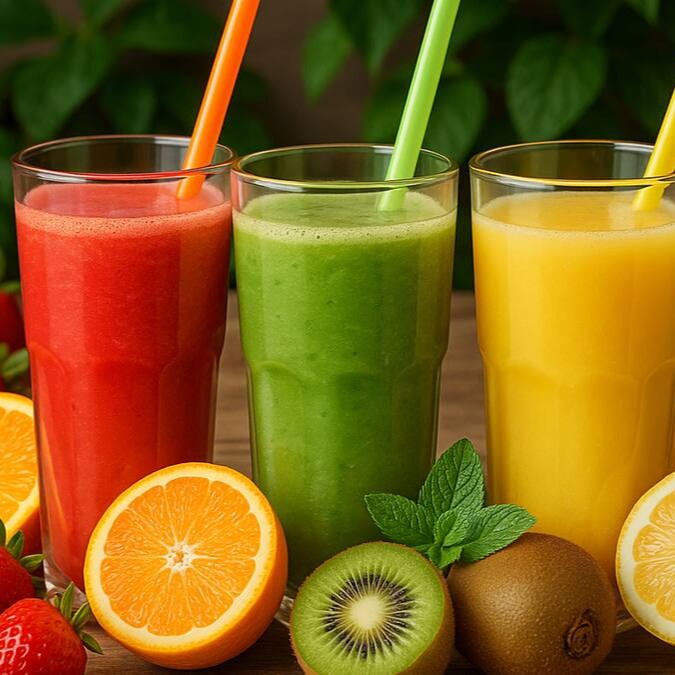 Refrescantes, nutritivos e cheios de sabor! Nossos sucos naturais são feitos na hora, com frutas selecionadas. Perfeitos para hidratar, revitalizar e alegrar seu Dia.