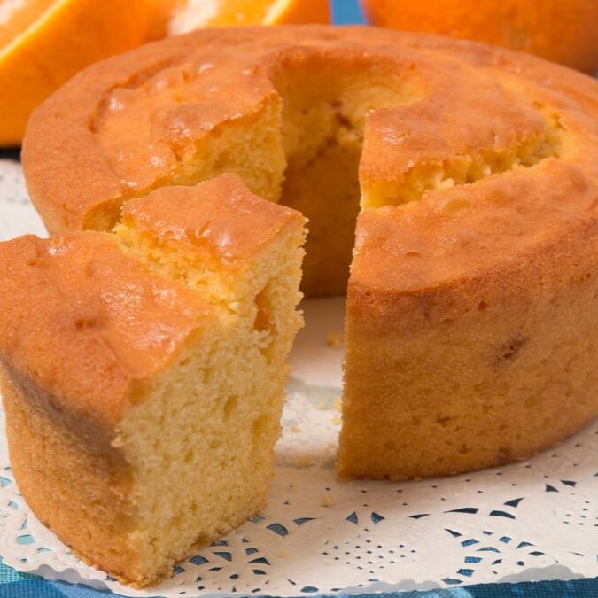 Massa fofinha e úmida, feita com suco de laranja fresco e raspas da casca para um aroma cítrico irresistível. Levemente caramelizado por fora, com aquele balanceamento perfeito entre doce e azedinho. Aproximadamente 400g.