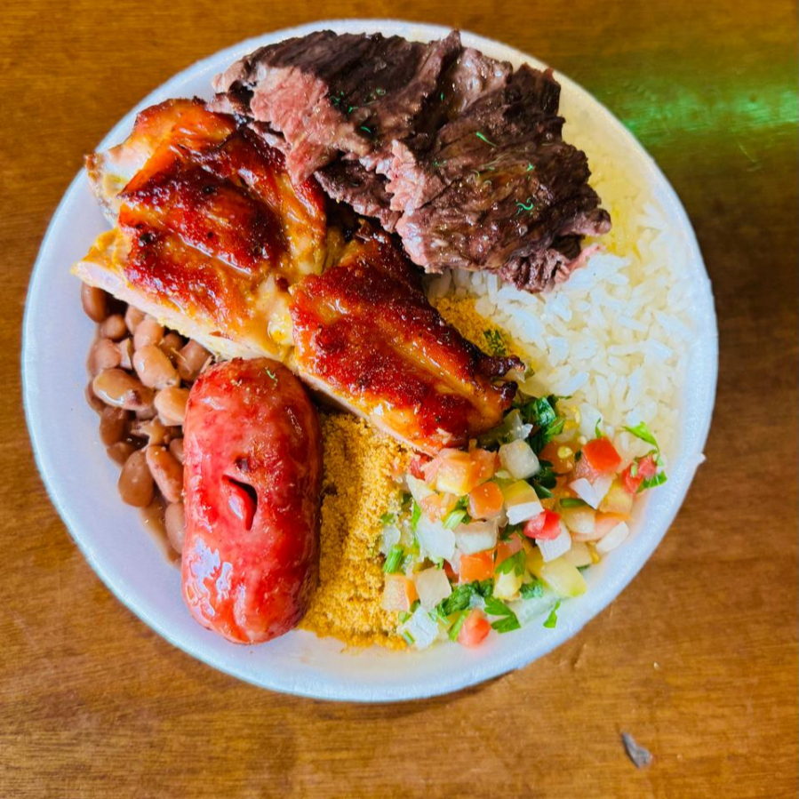 Arroz, Feijão, Farofa, Vinagrete, Carne, Frango e Linguiça