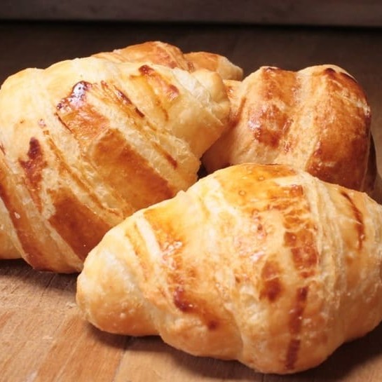 Autêntico croissant francês, feito com manteiga em camadas superfinas que derretem na boca. Casca dourada e macia, miolo alveolado e um aroma irresistível de manteiga fresca.️ Aproximadamente 70g.