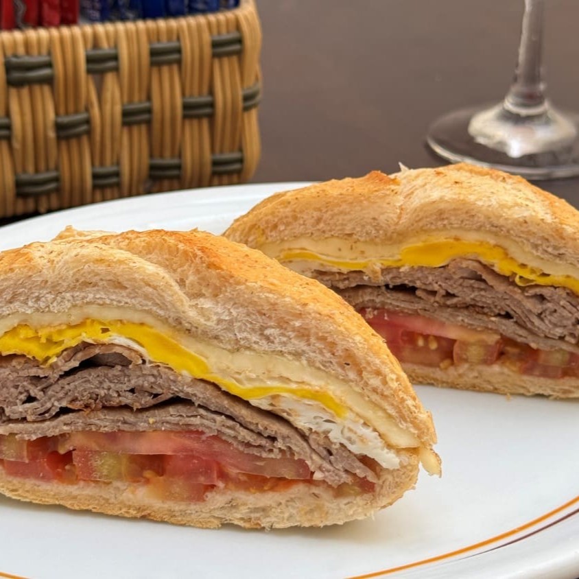 Delicioso sanduíche feito no pão francês integral, recheado com rosbife caseiro suculento, queijo branco cremoso, ovo frito e tomate fresco. Uma combinação perfeita de sabores e texturas para uma refeição nutritiva e saborosa!