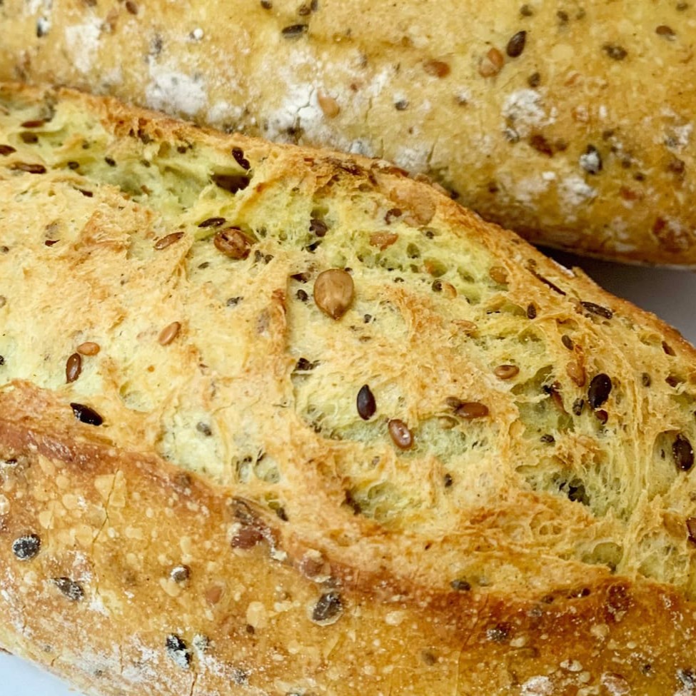 Deliciosa baguete artesanal, feita com fermentação natural, crocante por fora e macia por dentro, enriquecida com uma seleção de grãos nutritivos e um toque de açafrão, que além de dar um sabor único, traz benefícios antioxidantes. Aproximadamente 230g.