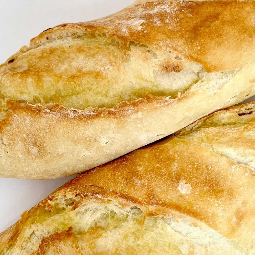 Pão artesanal de fermentação natural, enriquecido com azeite extravirgem de qualidade, que confere um sabor frutado e um interior incrivelmente macio e úmido. Casca dourada e levemente crocante. Aproximadamente 190g.