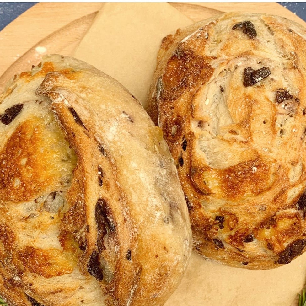 Pão artesanal de fermentação lenta, repleto de azeitonas verdes e pretas selecionadas, aromatizado com alecrim fresco. O contraste entre o sabor levemente salgado das azeitonas e o frescor das ervas cria um pão sofisticado e irresistível. Aproximadamente 280g.