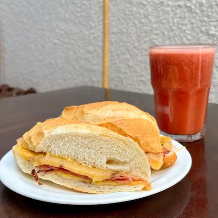 Misto quente com pão crocante, queijo derretido e presunto suculento + suco natural 500ml (escolha o sabor!). Perfeito para um lanche rápido e delicioso!