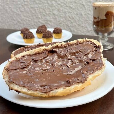 Pão quentinho com Nutella cremosa + mini brigadeiro (100g) macio e gourmet + cappuccino especial (180ml) cremoso e aromático. O combo perfeito para adoçar seu Dia!
