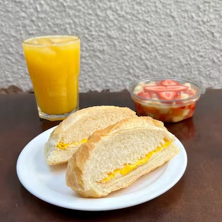 Energia saudável e saborosa! Pão fresquinho com ovo preparado na hora + salada de frutas pequena (mista e fresquinha) + suco natural 500ml (escolha o sabor!). O combo perfeito para começar o Dia com vitalidade!