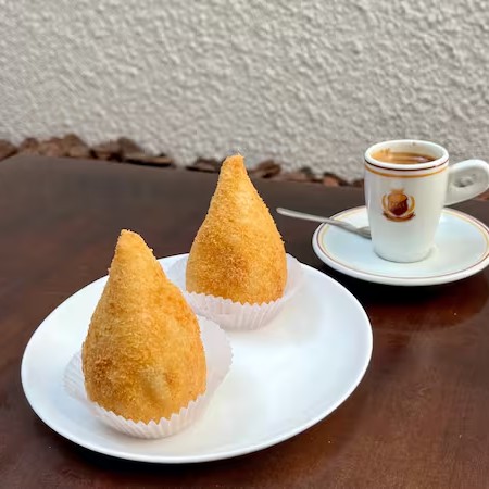 Delicie-se com 2 coxinhas douradas, crocantes por fora e recheadas com o mais cremoso frango, acompanhadas de um café expresso médio (180ml) robusto e encorpado, perfeito para equilibrar sabores. Uma combinação clássica que vai direto ao paladar!
