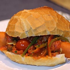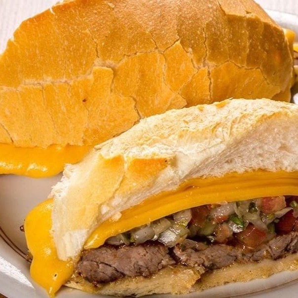 Pão Francês, Contra filé, Queijo, Vinagrete e Maionese.