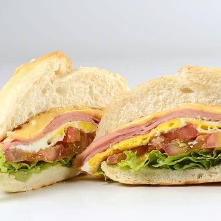 Pão Francês, Presunto, Queijo, Ovo, Alface Tomate e Maionese.