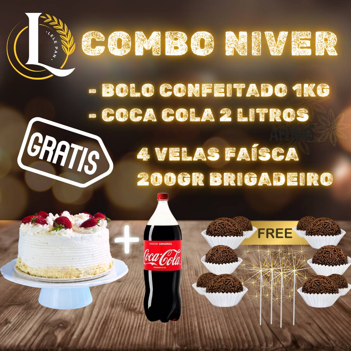 Combo Niver - 1 Bolo + 1 Coca 2l = Grátis = 4 Velas Faísca + 20