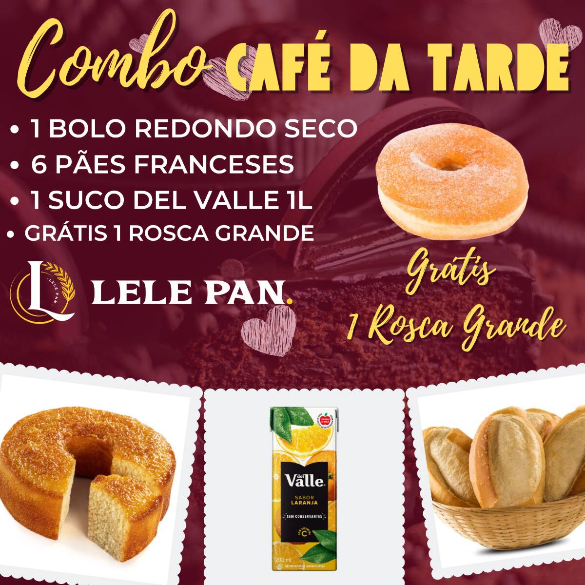 1 Bolo Redondo Seco + 6 Pães Franceses + 1 Suco Del Valle 1l = Grátis 1 Rosca Grande.