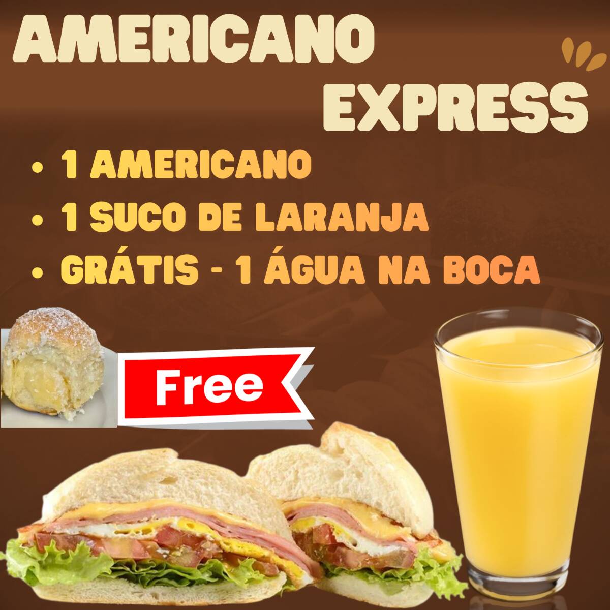 Americano Express + Suco De Laranja 500ml = Gratis 1 Água Na Boca.