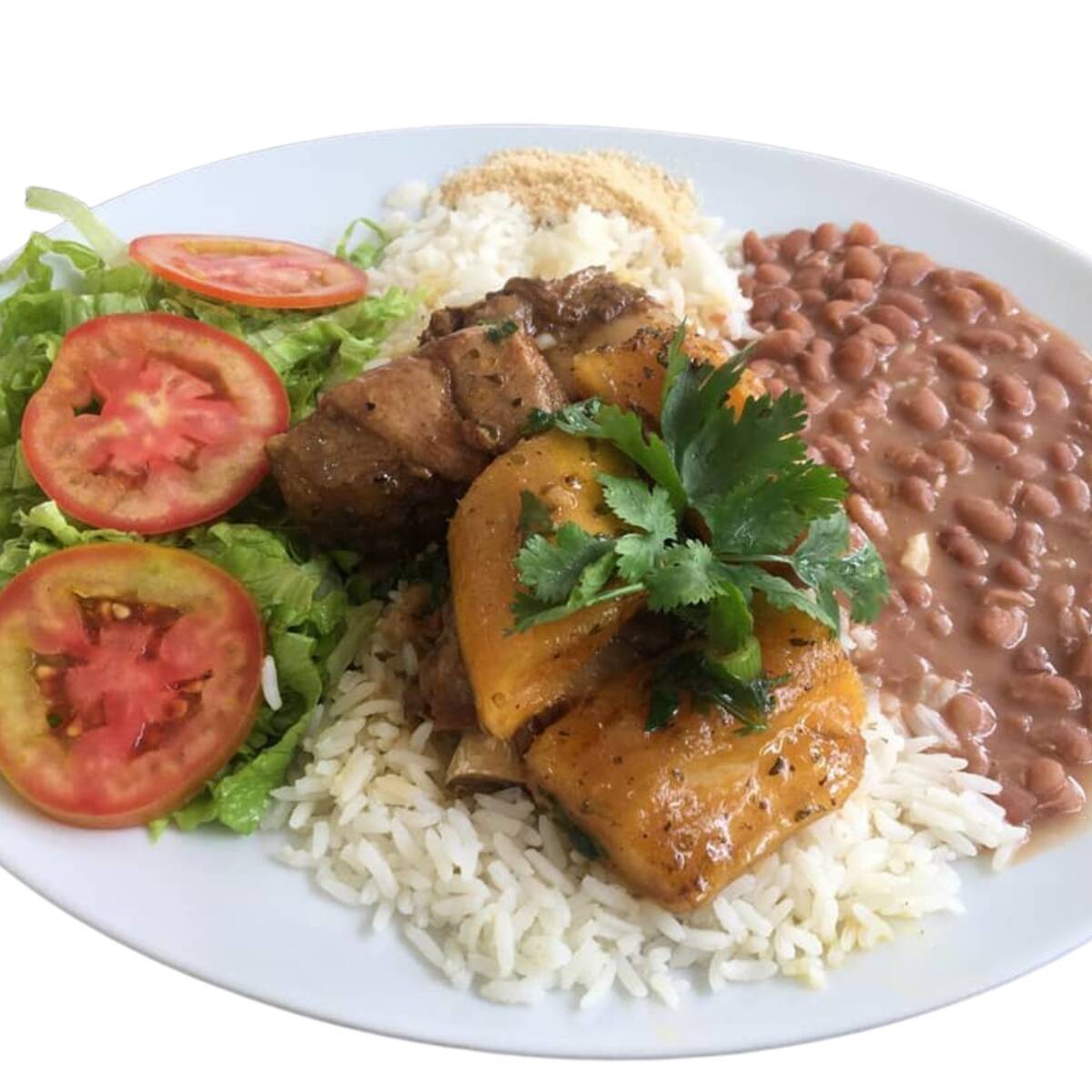 Acompanha um delicioso e caseiro Arroz, Feijão, Costela Bovina com Mandioca e uma Salada Fresquinha de Alface/Tomate/Cebola/Repolho !!!
