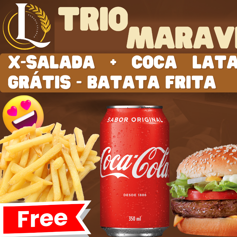 Trio Maravilha - X-salada + Coca 350ml - Grátis Batata Frita