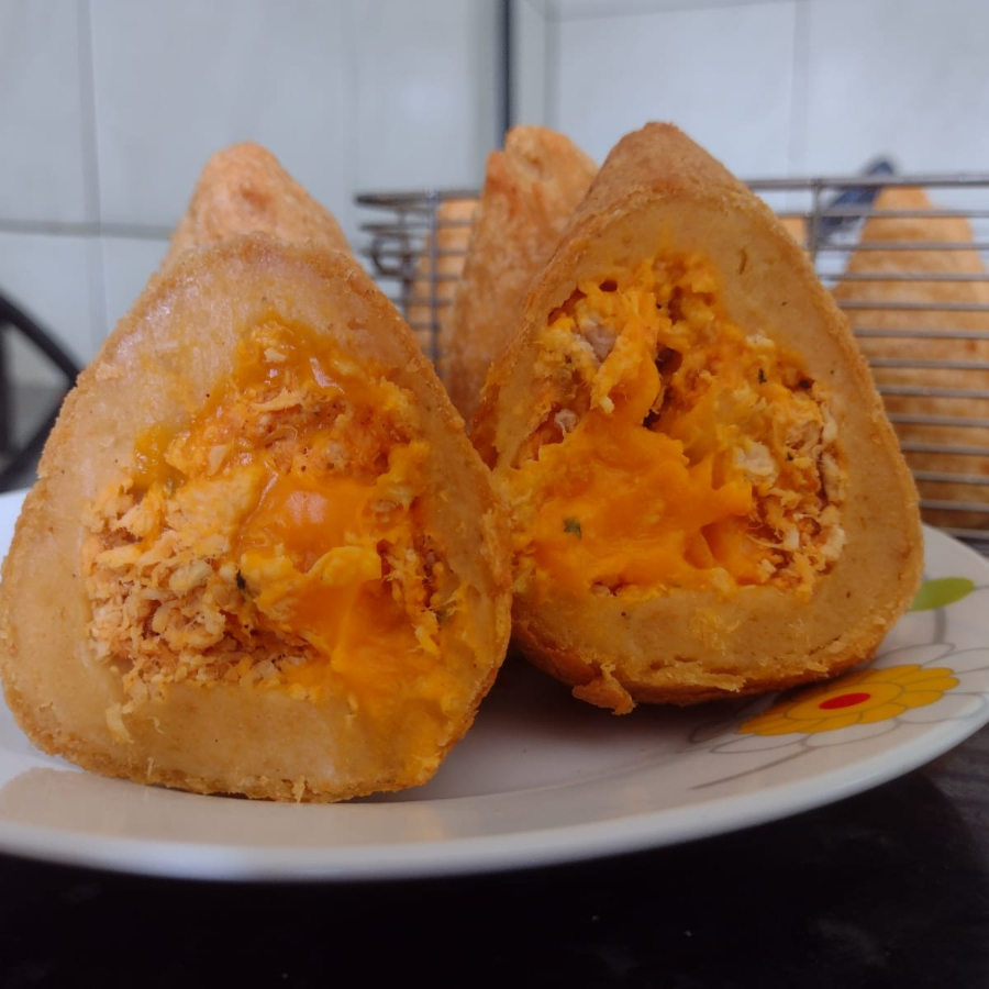 Para os amantes de cremosidade! Nossa coxinha traz um recheio farto de frango desfiado envolvido em um generoso creme de cheddar. Massa macia por dentro, casquinha crocante por fora e aquele sabor marcante que só a gente tem. É morder e se apaixonar!