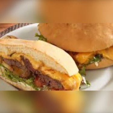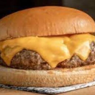 Pão de hambúrguer, hambúrguer de carne e queijo prato.