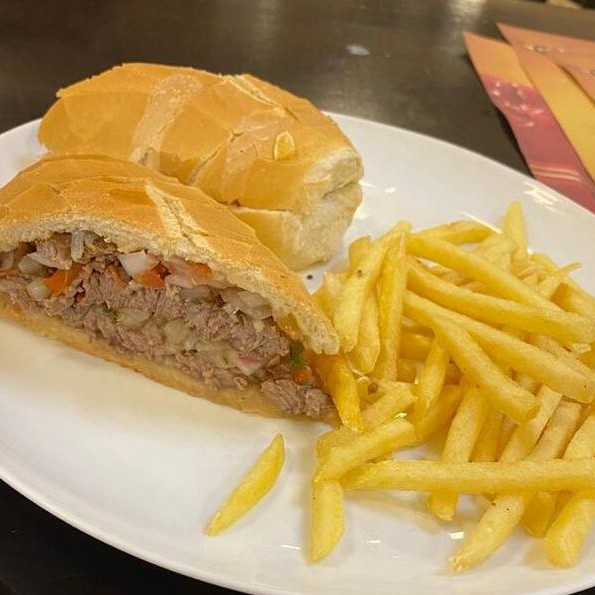 Pão sírio, contra filé, presunto, queijo prato, maionese, ovo, vinagrete, alface, tomate e orégano, coberto com mussarela.