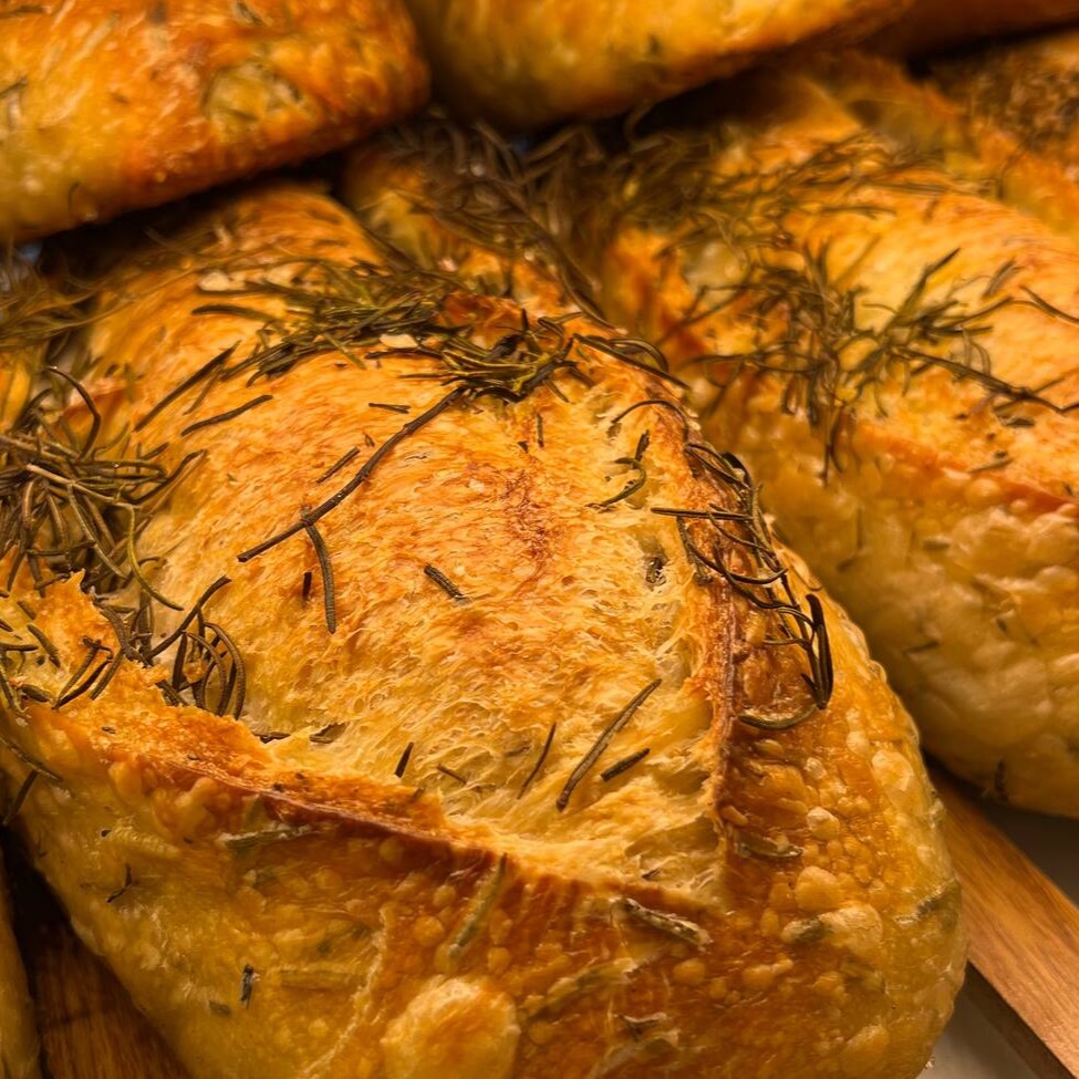 Com uma textura irresistível, nosso pão de alecrim é feito com farinha italiana e sua fermentação é 100% natural.