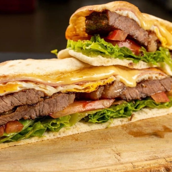 Pão Sirio, Filé Mignon, Ovo, Maionese, Queijo, Alface e Tomate. Não acompanha Batata!