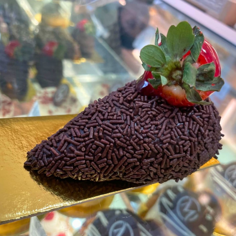 Delicado doce feito com biscoito champagne crocante, mergulhado em brigadeiro cremoso de chocolate nobre. Aproximadamente de 60 a 80g.
