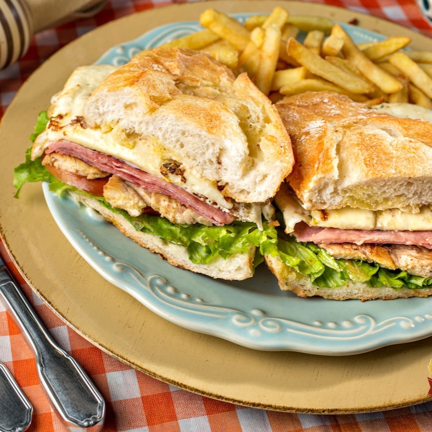 Pão Francês, Presunto, Queijo, Ovo, Maionese, Alface e Tomate. Obs. Não acompanha Batatas Fritas