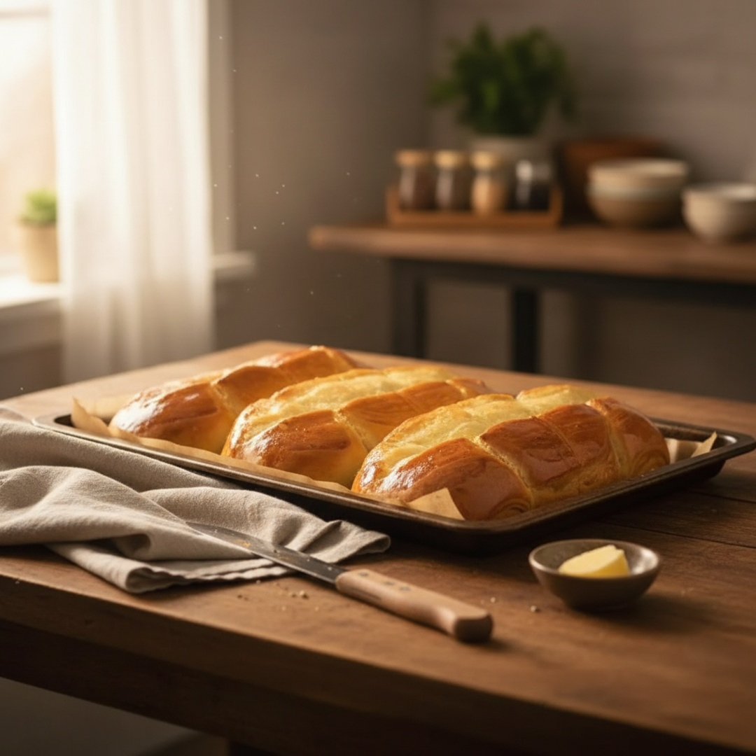 Que tal uma baguete folhada bem crocante? Camadas leves que derretem na boca – puro prazer em forma de pão!
