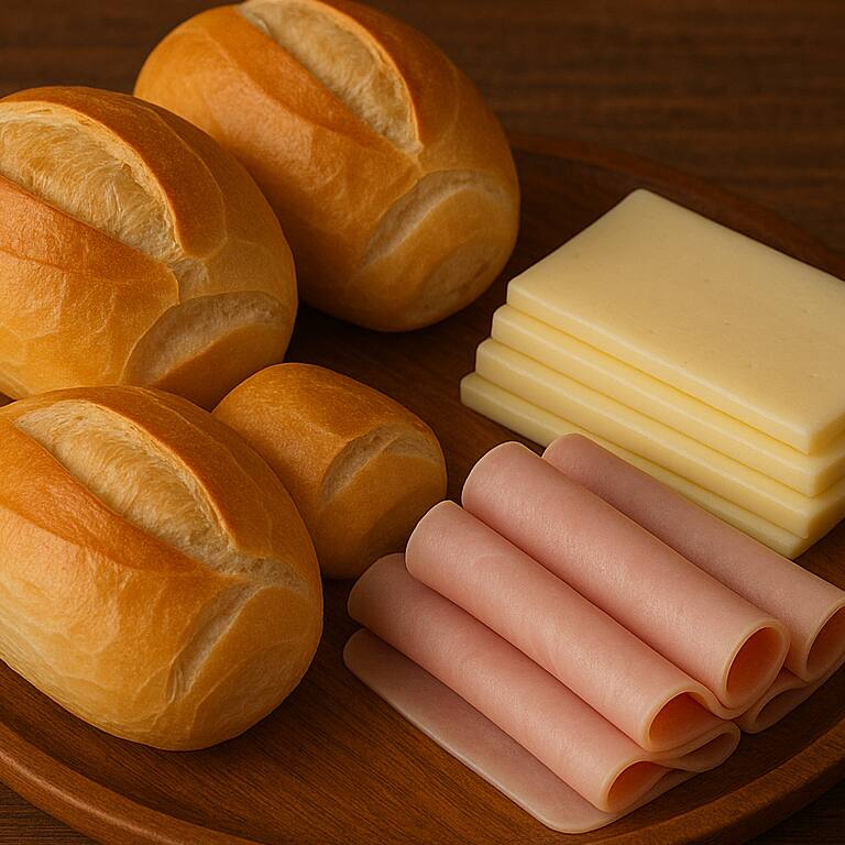05 Pães Franceses + 100 Grs De Presunto + 100 Grs De Mussarela