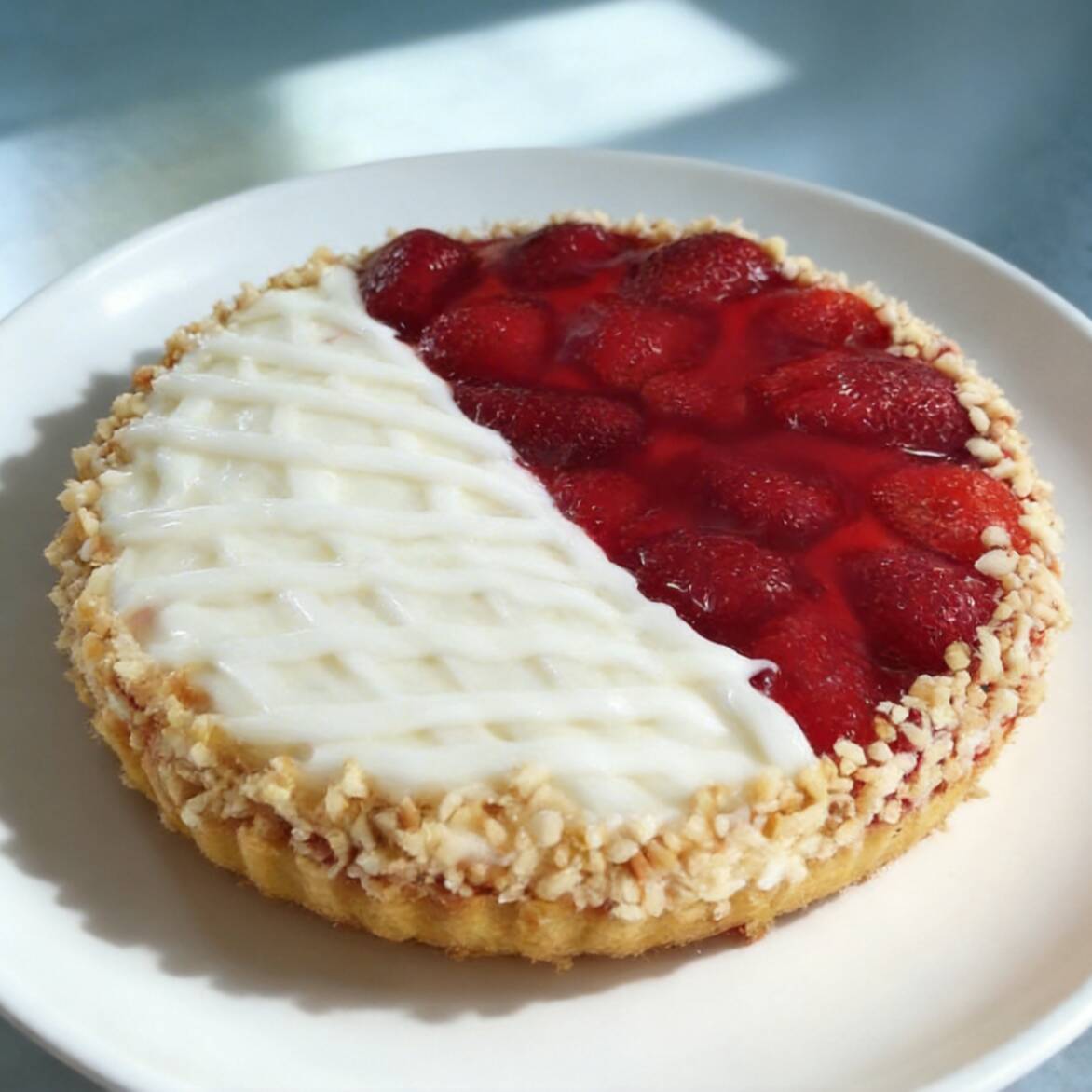 Massa crocante, creme de confeiteiro e morangos