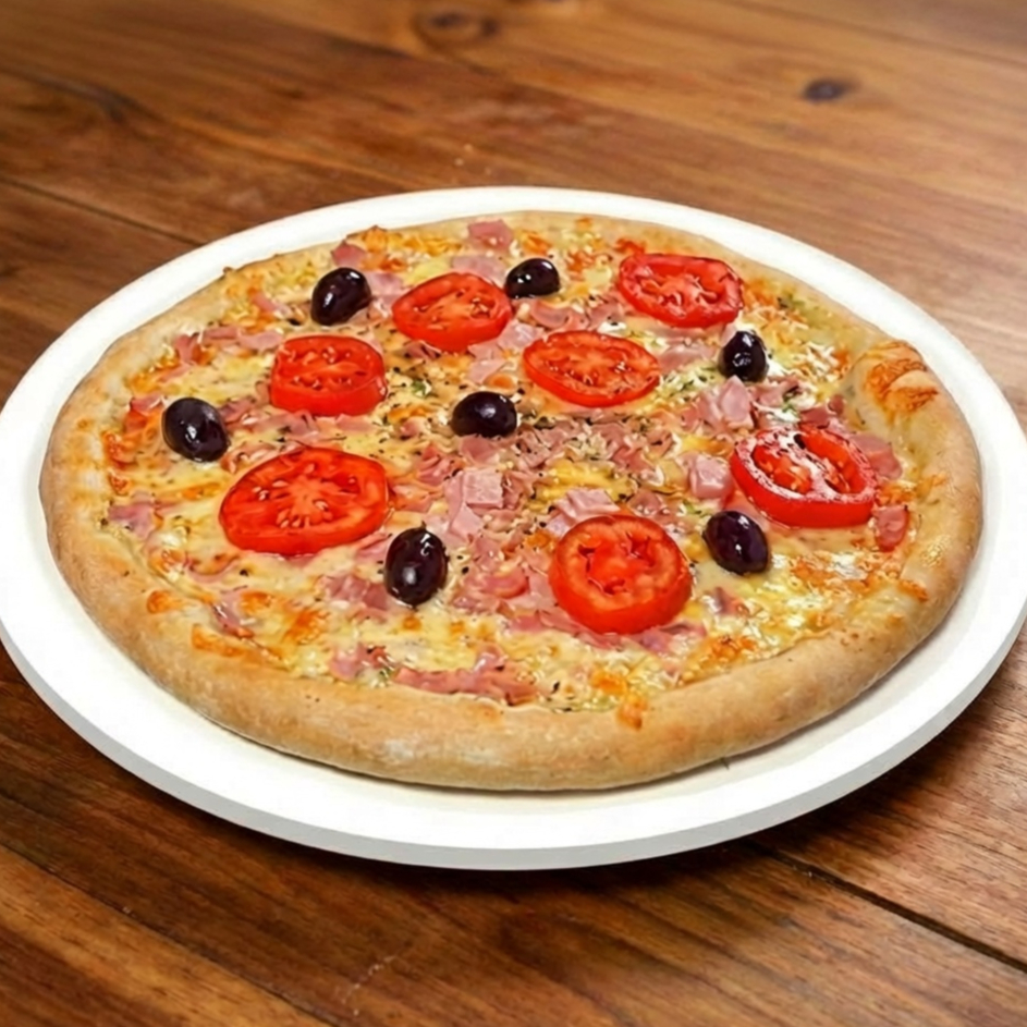 Massa crocante, mussarela, presunto e tomate (não serão substituídos itens)
