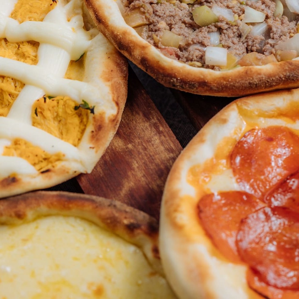 Temos opções com Frango, Carne, Mignon e Calabresa.