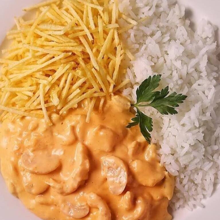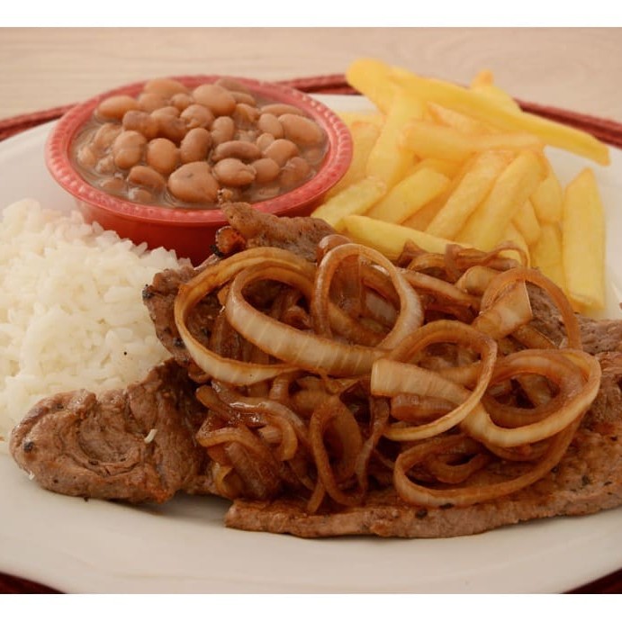Este prato esplendoroso é acompanhado de um arroz fresco e aromático, um feijão caseiro de sabor surpreendente, batatas fritas crocantes e douradas, e uma salada refrescante, colorida e nutritiva. Uma combinação perfeita para tornar seu jantar único e inesquecível. Uma verdadeira experiência gastronômica para compartilhar!