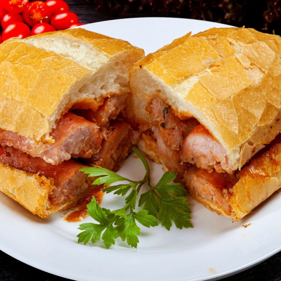 Lanche de Carne Louca na baguete crocante, com recheio suculento e tempero perfeito. Saboreie essa delícia no Festival de Inverno!