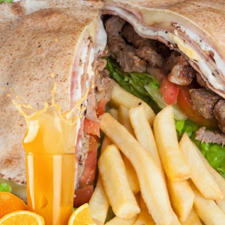 Combo: Beirute À Moda + Fritas + Suco De Laranja O