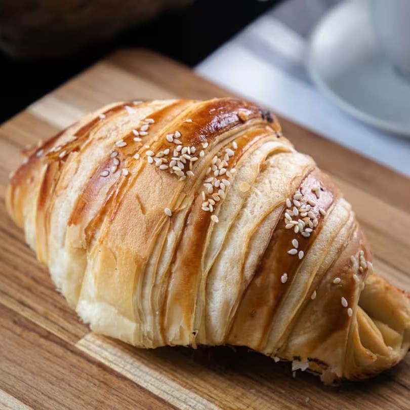 O croissant é um pãozinho de origem francesa, famoso por sua massa folhada, leve e amanteigada. Ele é perfeito para um café da manhã especial ou um lanche saboroso, podendo ser consumido puro ou recheado com ingredientes como queijo, presunto, geleias ou chocolate