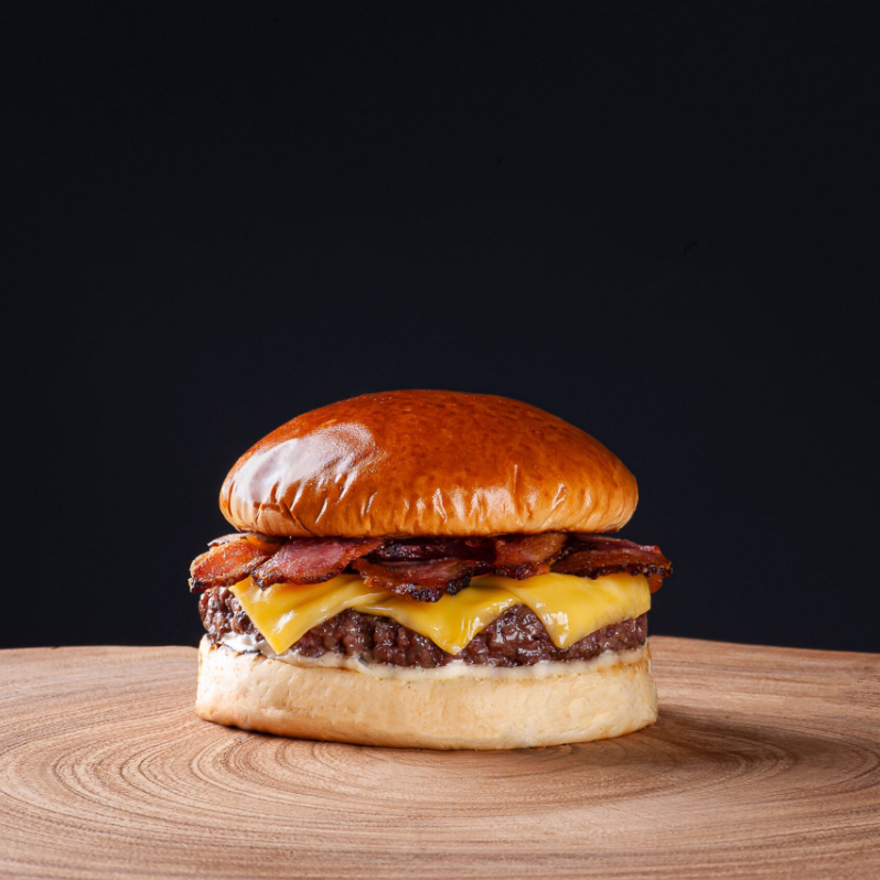 pao hamburguer queijo prato e bacon