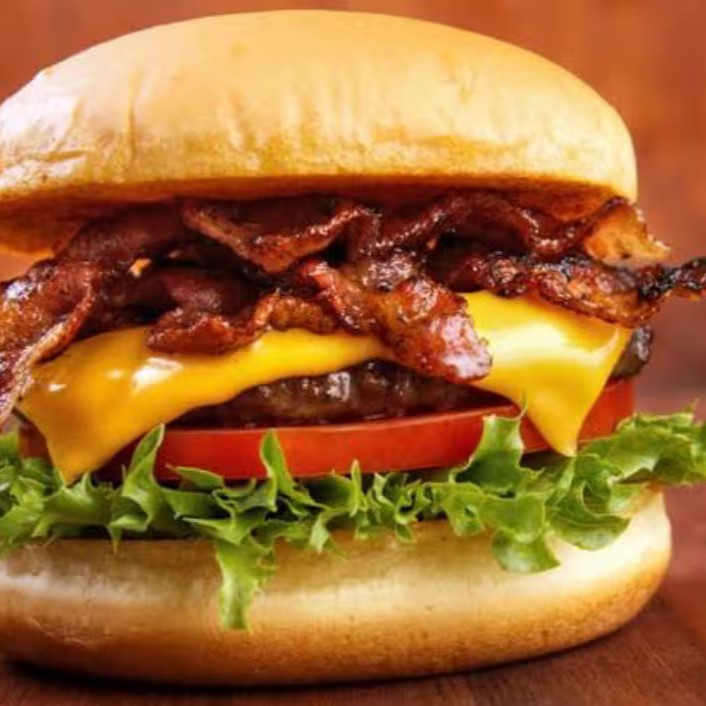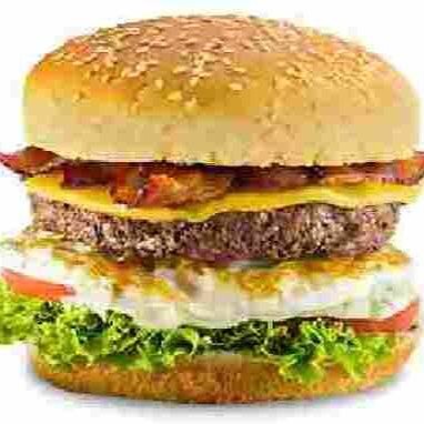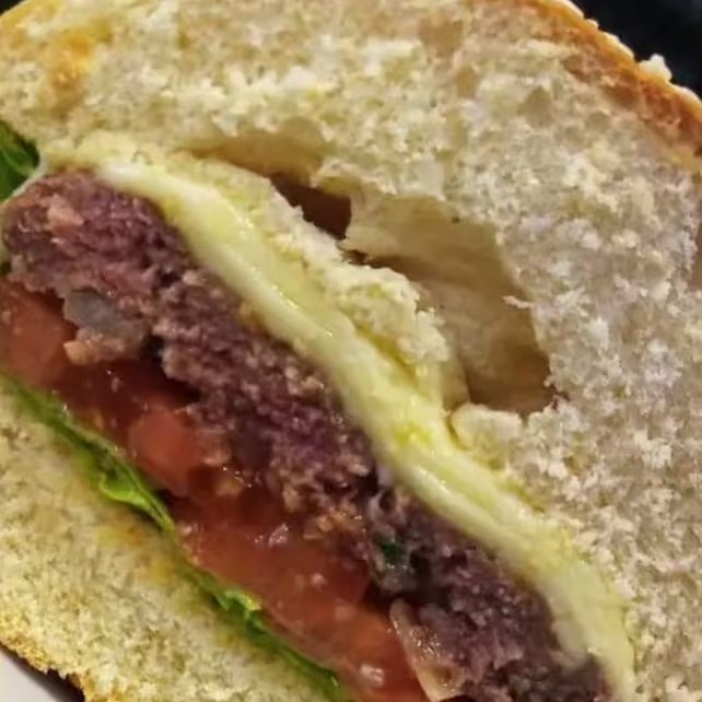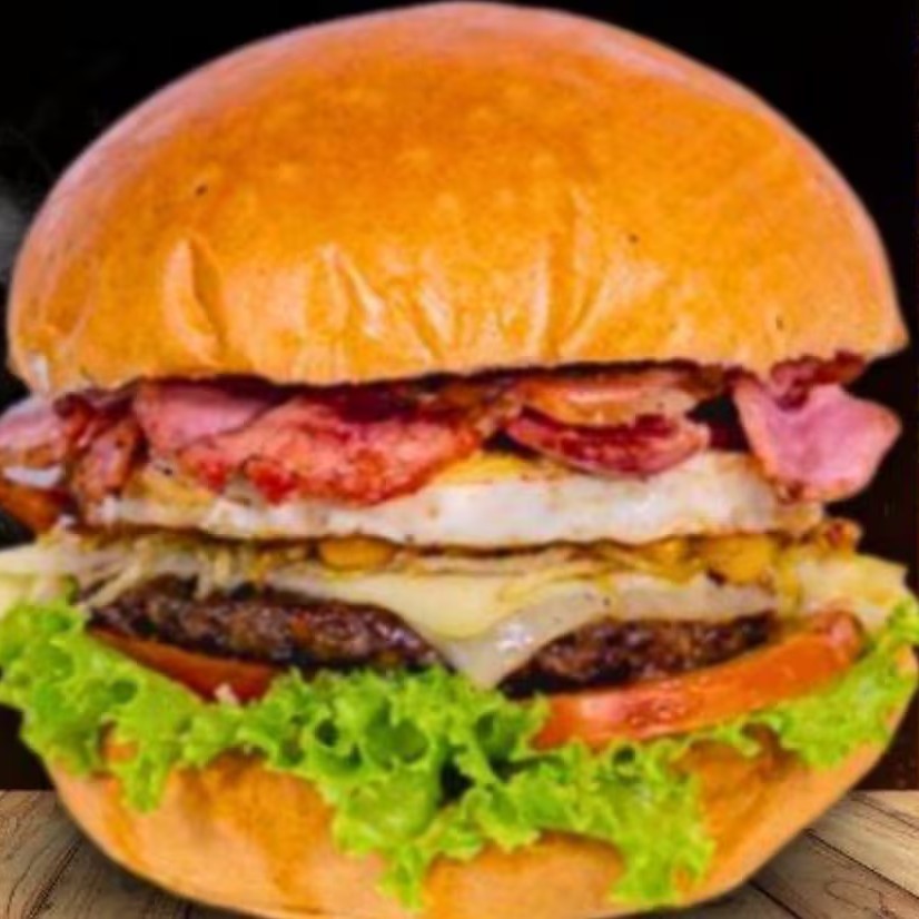 Hambúrguer artesanal 150 G ,bacon,ovo,presunto,salame,mussarela,alface,tomate e maionese
