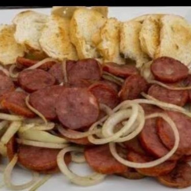 Porção De Calabresa Fatiada Acebolada Aperitivo + 2 Pães Francês