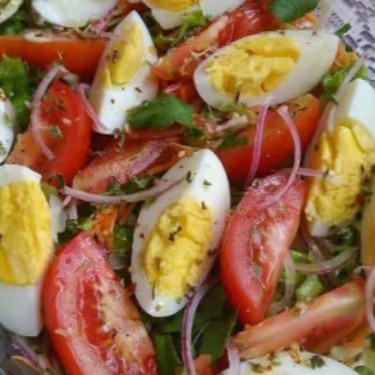 Salada De Alface Com Queijo, Tomate, Cebola E Ovos Cozidos