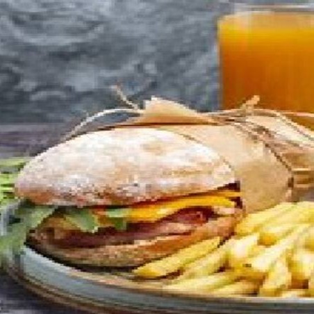 Queijo prato,presunto,alface,tomate e molho ervas batata frita + suco (laranja ,maracuja)