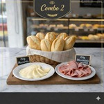 Combo café da manhã. 4 Deliciosos pães francês fresquinhos. 100g de mussarela de primeira qualidade fatiado. 100g de presunto de primeira qualidade fatiado.
