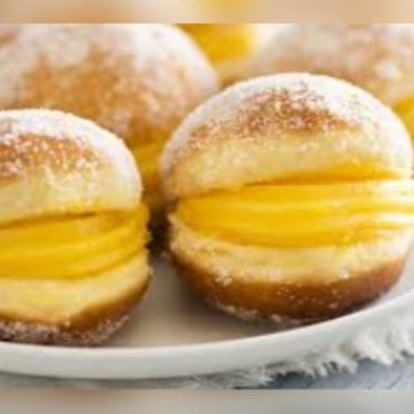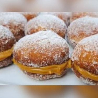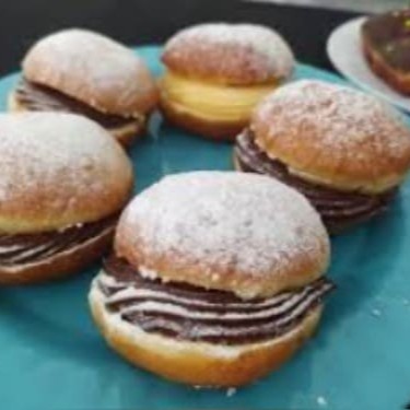 Sonho feito de trigo e recheado com chocolate e apos cobertura açucar gelado.