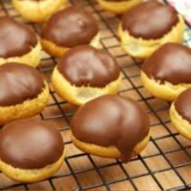 Doce pequeno e redondo feito de massa choux recheada com Doce de leite e com chocolate ao leite