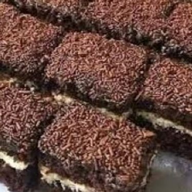 Bolo recheado de prestigio com cobertura de chocolate granulado