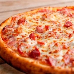 - molho de tomate - calabresa moida - bacon - Catupiry - azeitona - orégano