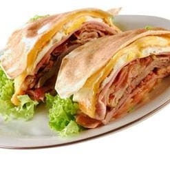 Beirute de peito de peru (serve até 2 pessoas) - pão sírio - maionese - alface e tomate - peito de peru - rosbife - bacon - ovo